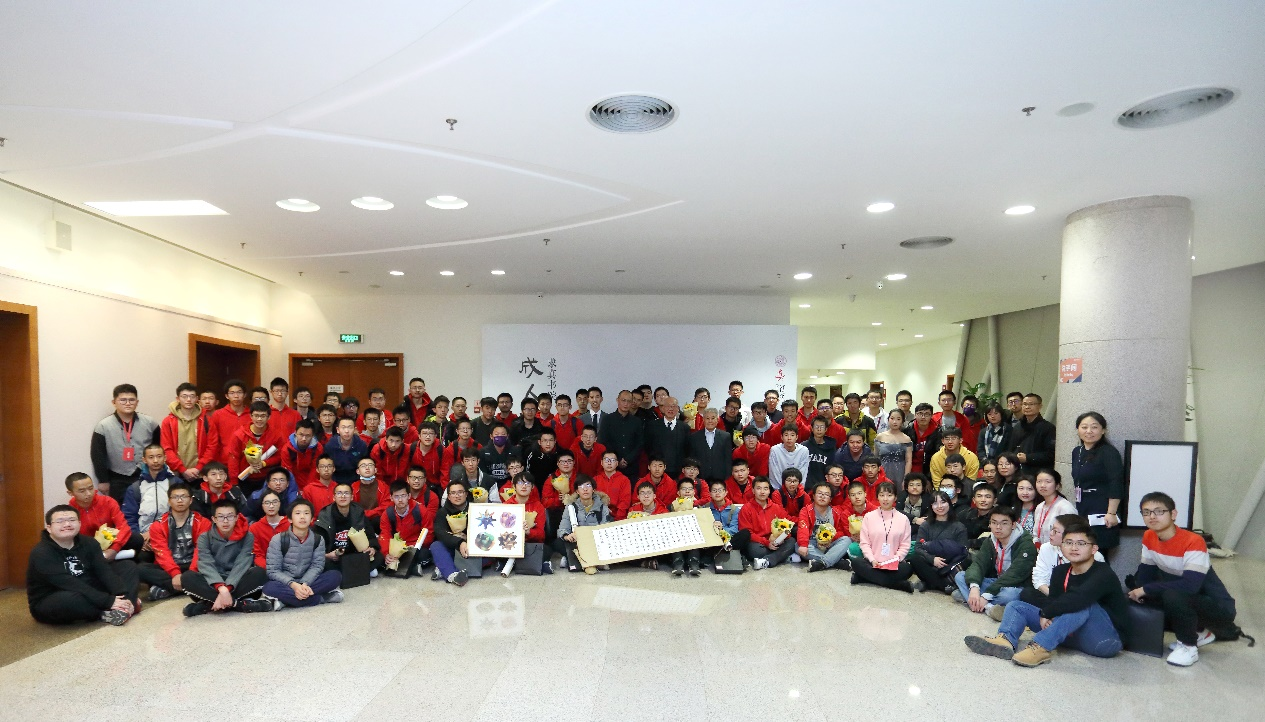 内场活动结束之后,38位同学依次穿越“成人门”,丘成桐先生一一为他们赠送纪念礼物,并合影留念。随后,师生们一起切蛋糕、做游戏,现场的气氛温馨而热烈。