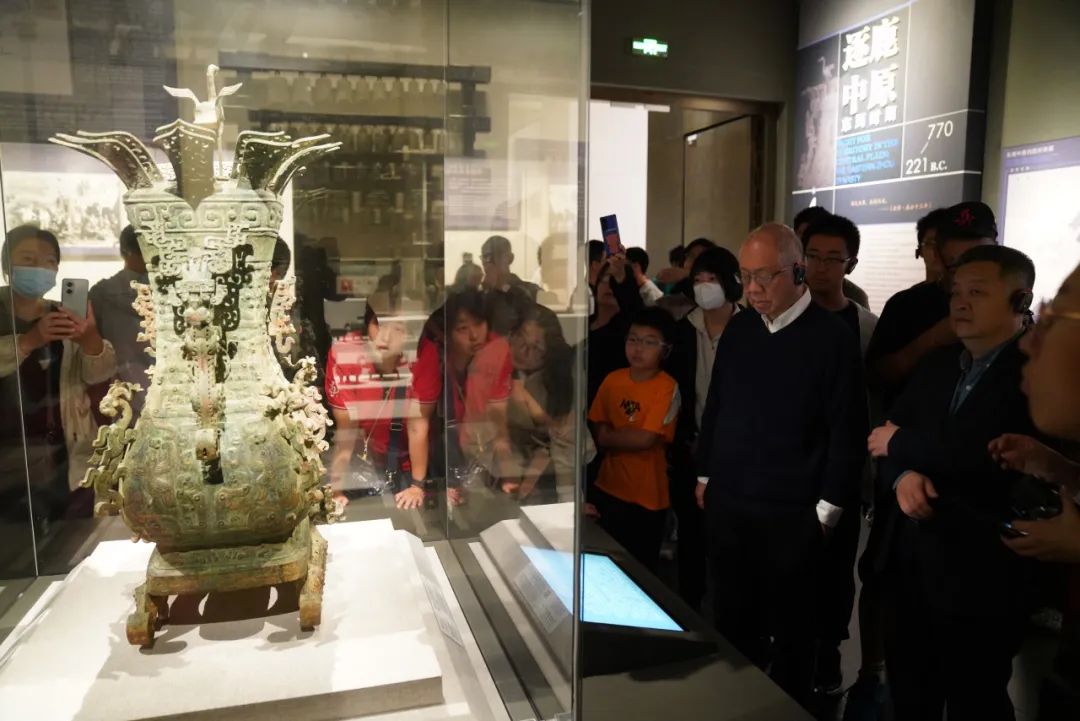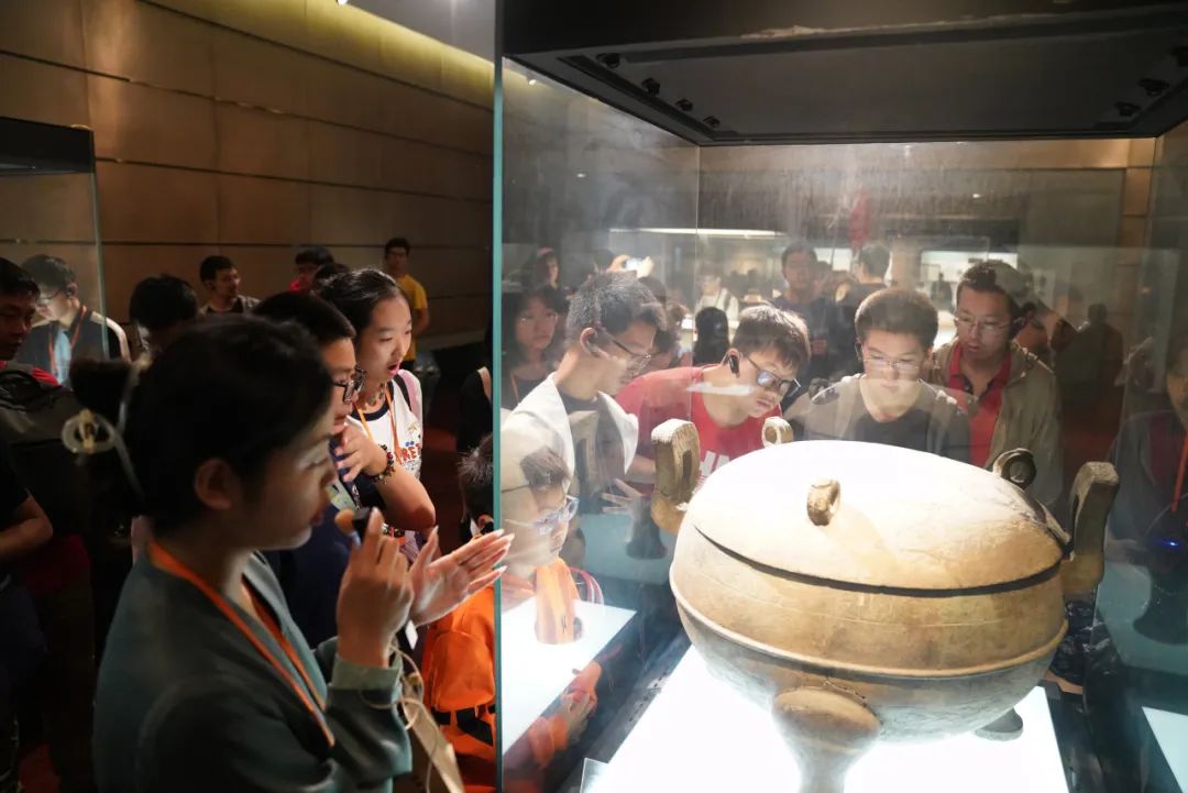 来到赫赫有名的河南博物院,我们惊叹于馆藏文物之多,其中一部分更被誉为国之重器。在参观之前,我们提前查阅了相关资料,对一些重要文物如莲鹤方壶、妇好鸮尊、云纹铜禁、玉柄铁剑、贾湖骨笛、杜岭方鼎、四神云气图壁画做足了功课。当日来到博物院,重点参观了“泱泱华夏,择中建都”的主题展览,在讲解员介绍下,我们对中华文化之根-黄河流域文化有了更深的了解。