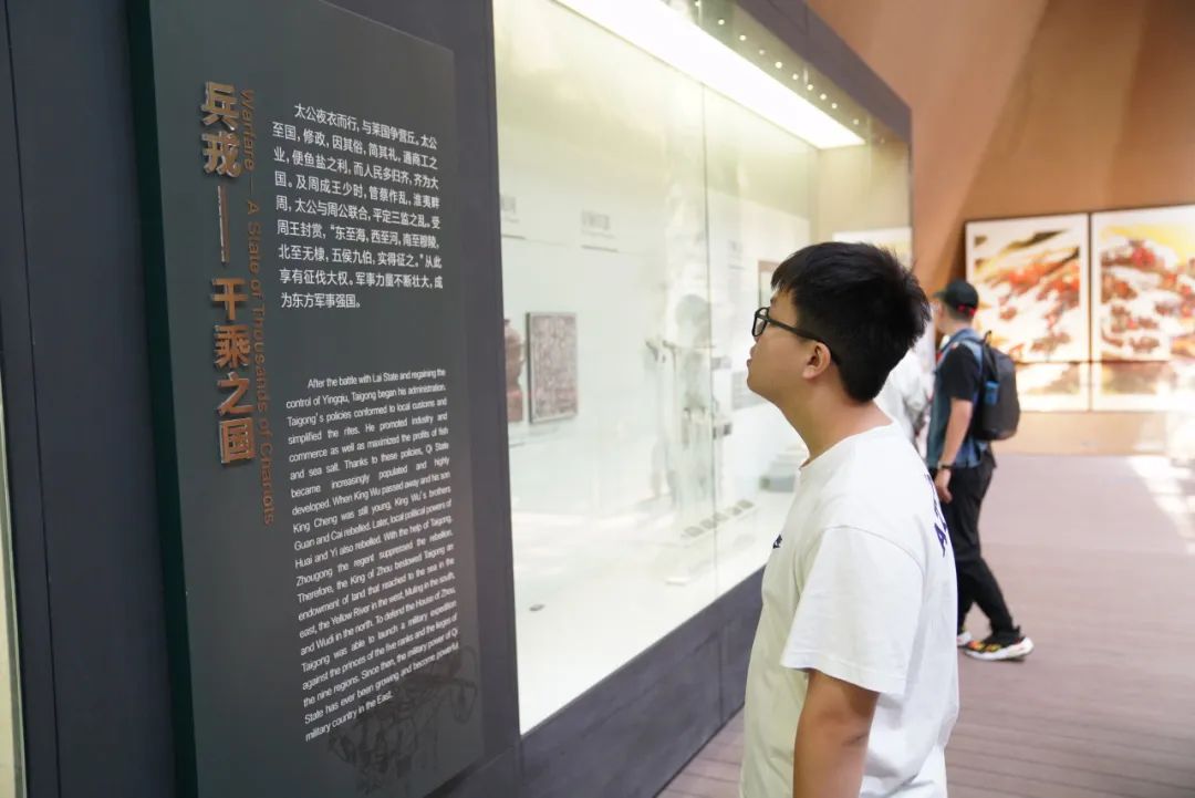 在淄博我们还参观了姜太公祠以及陈庄西周遗址博物馆。在姜太公祠,除了了解到了姜太公一生的丰功伟绩、军事思想以及治国理念之外,在场的部分老师和同学们发现自己的姓氏正是得姓于姜,可谓是一场寻根问祖之旅。而在西周遗址博物馆出土的西周早期文化遗迹,特别是带有“齐公”铭文的铜觥为齐文化的早期历史研究提供了直接依据,也证明了历史上确有姜太公其人,并非只是存在于传说。