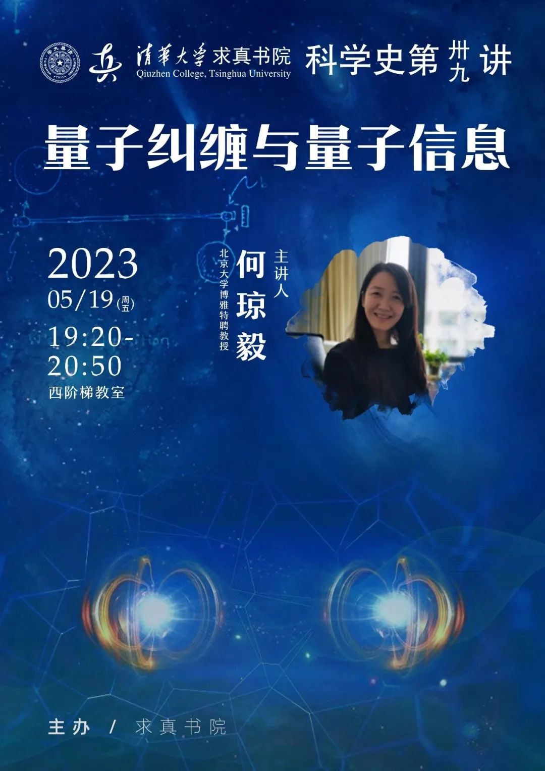 何琼毅,北京大学博雅特聘教授,博士生导师,国家杰出青年科学基金获得者。长期从事量子物理、量子信息基础理论研究,特别是在量子纠缠检测及其相关应用研究中,从两体纠缠到多体纠缠、从定性分类到定量检测、从揭示纠缠性质到开发应用方案,开展了系统性和创新性的理论工作,多个理论研究结果和方案被实验证实。先后在Nature Physics、Nature Photonics、Physical Review Letters等国际重要杂志发表研究论文90余篇。担任中国物理学会咨询工作委员会委员、青年工作小组副主任等学术服务。