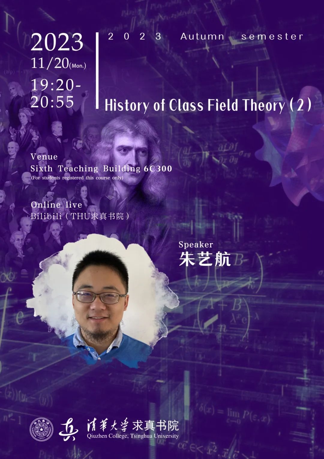 Yihang Zhu is a professor at YMSC, Tsinghua University. He got his PhD from Harvard and worked at Columbia and Maryland before joining Tsinghua. His research interest is in Number theory and automorphic representations.