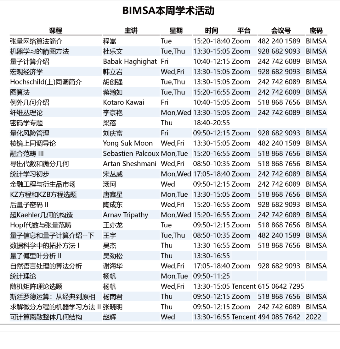 YMSC-BIMSA Quantum Information Seminar in 2022 Spring