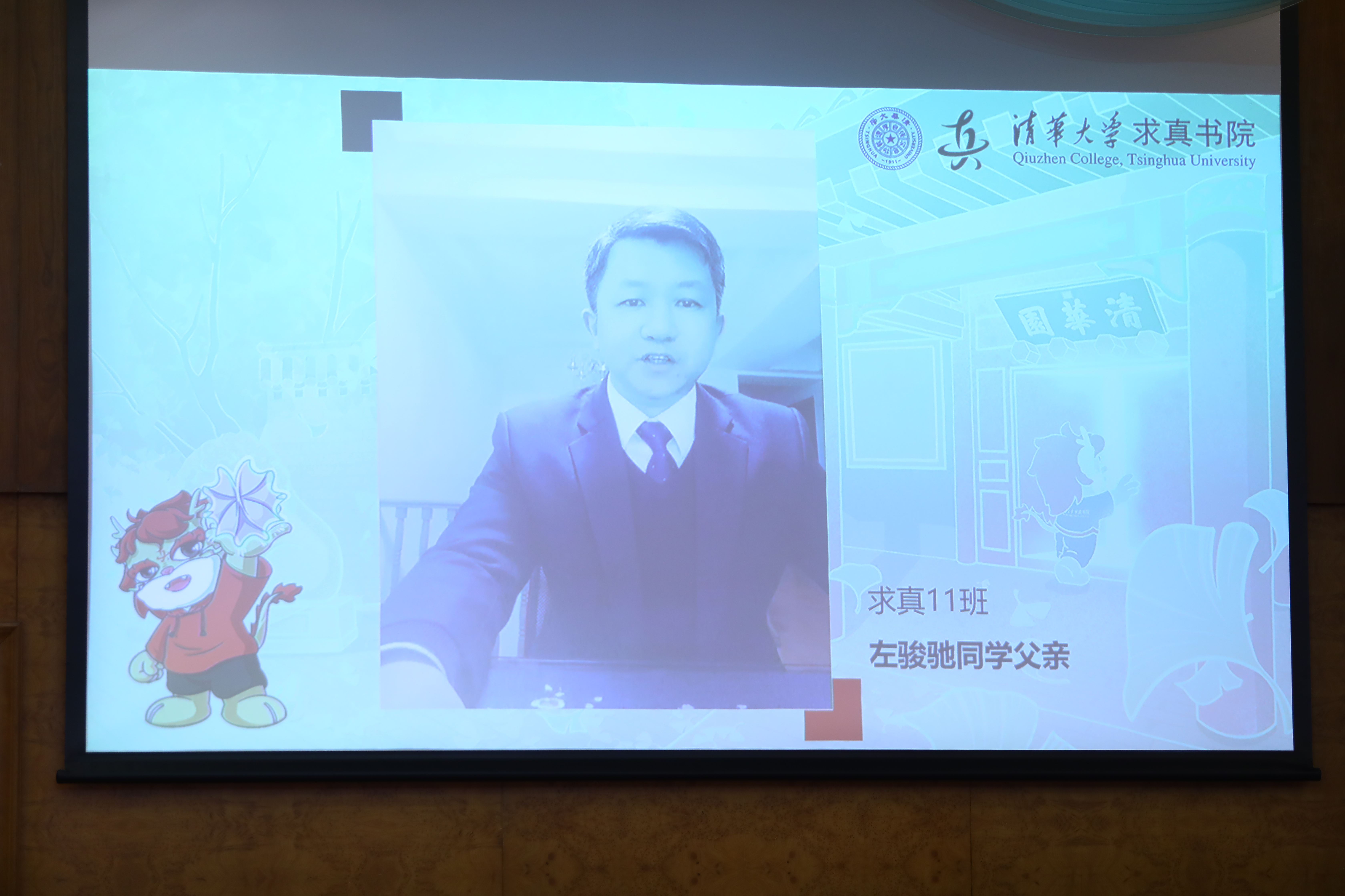 2021级领军班左骏驰的父亲作为亲友代表,通过视频的方式讲述左骏驰入选数学和信息学国家集训队后,加入88看球