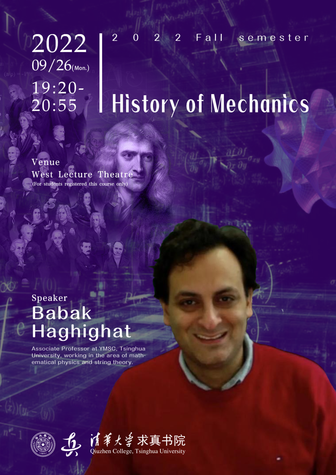 主讲人介绍Babak Haghighat, Associate Professor at YMSC, Tsinghua University, working in the area of mathematical physics and string theory.摘要I will review the development of classical mechanics from its roots in Ancient Greece and follow its course through the modern era and the scientific revolution to the current formulation due to Euler and Lagrange culmination. I also give a brief outlook...